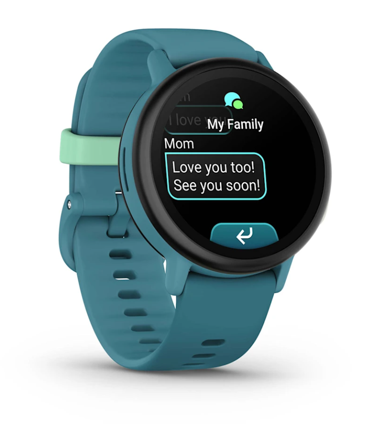 При наличии подписки вы можете использовать приложение Garmin Jr. для отправки текстовых сообщений на часы ребенка. Дети могут писать сообщения и отвечать на них с помощью полноценной клавиатуры на устройстве — одобренным родителями контактам и в семейных группах.